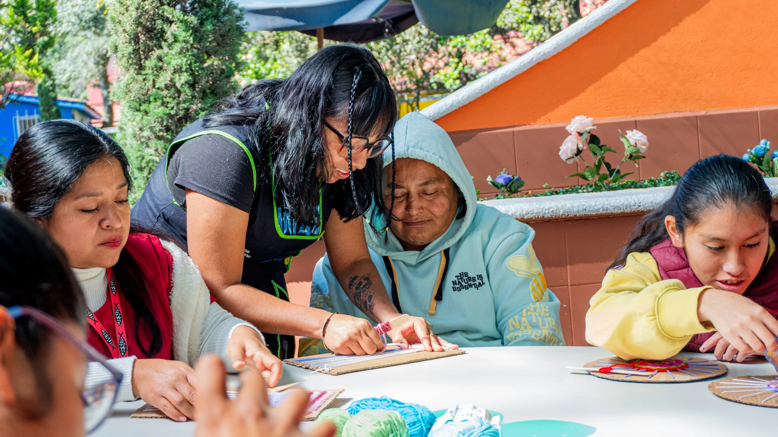“Tejiendo mi historia / Rostros” es un taller concebido como un espacio creativo y reflexivo donde el acto de tejer se transforma en una herramienta para construir, compartir y resignificar experiencias personales y colectivas. Fue desarrollado con mujeres adultas mayores que habitan la Fundación Estancia Sagrado Corazón de Jesús, muchas de ellas en contextos de abandono, con diversas discapacidades y atravesadas por condiciones de alta vulnerabilidad.